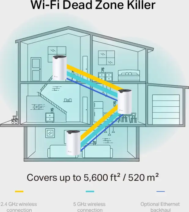 AC1900 Whole Home Mesh Wi-Fi SystemSPEED: 600 Mbps at 2.4 GHz +1300 Mbps at 5 GHzSEPC: 3× Internal Antennas, 3× Gigabit Ports (WAN/LAN auto-sensing)FEATURE: Deco App, Router/AP Mode, IPv6, IPTV, Paren