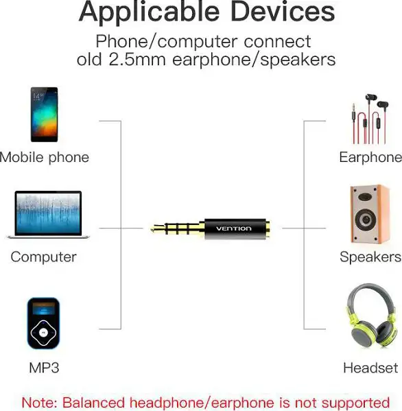 ADAPTER AUDIO 3.5 mm MUŠKI NA 2.5 mm ŽENSKI VENTION BFBB0 CRNI