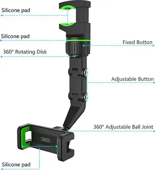 Auto držač za mobitel rotirajući Praktičan držač telefona za unutrašnji retrovizor Kompatibilan s većinom pametnih telefona Kompaktan i minimalistički dizajn Brand: XO