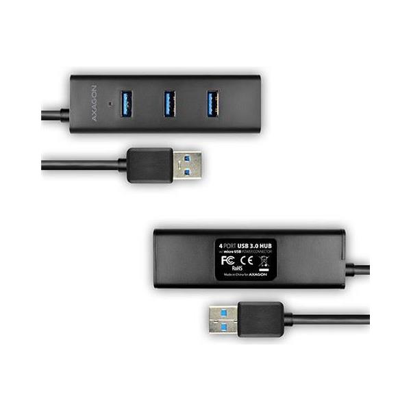 AXAGON HUE-S2BL 4x USB3.0 Charging Hub 1.2m Cable, MicroUSB Charging, 4 x USB 3.0 HUB, 1,2m kabel, mogučnost da bude USB HUB za punjenje (MicroUSB konektor za punjenje, adapter za punjenje nije uključen), podržava Fast Charging do 2A