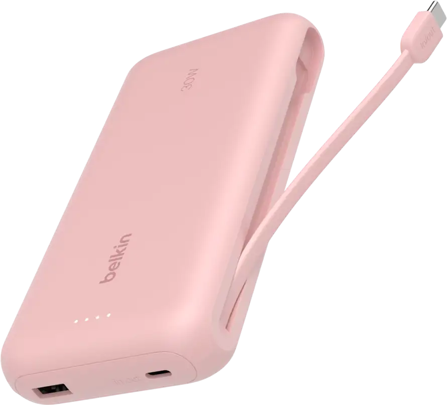 BELKIN 20k PD30W Integrated USB-C Cable Power Bank, Pink