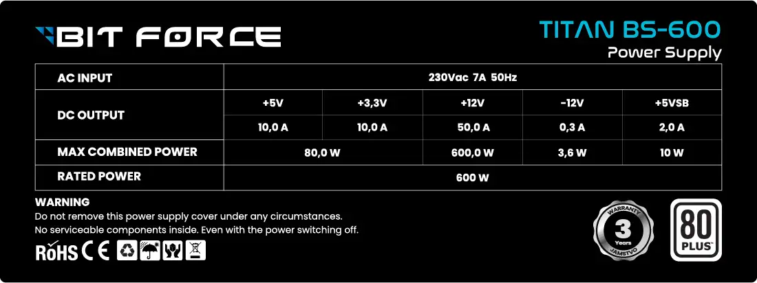 BIT FORCE napajanje 500W 80+ TITAN BS-500 ATX 2.31