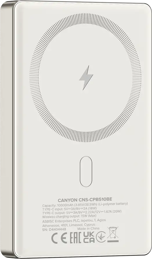 CANYON power bank OnPower 510 slim Magnetic 10000 mAh PD20W Beige