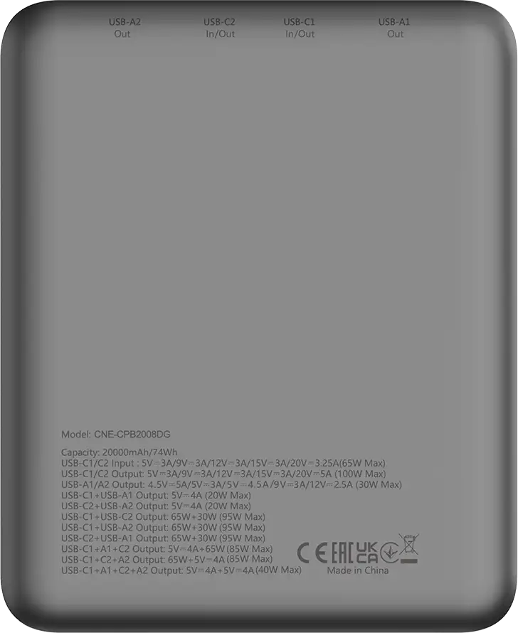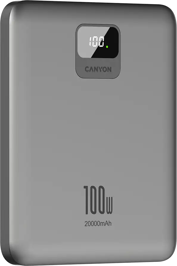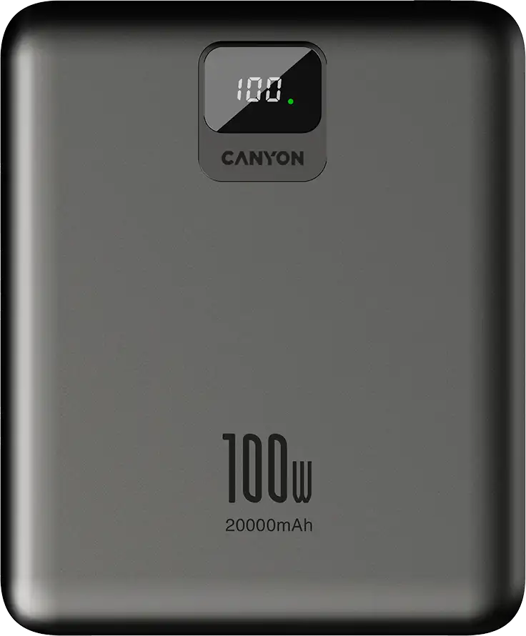 CANYON power bank PB-2008 LED FLAT 20000 mAh PD100W QC3.0 Dark Grey