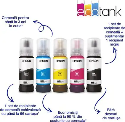 L3231, 33 SPM (c/b), 15 SPM (u boji), 5760×1440 dpi, , ESC / P-R, Ulazna ladica 100 Listova, Tip skenera Senzor za prep. slike (CIS), Duplex Manual, USB, Tinte: C13T00S14A, C13T00S24A, C13T00S34A, C13T00S44A ,C13T00S64A