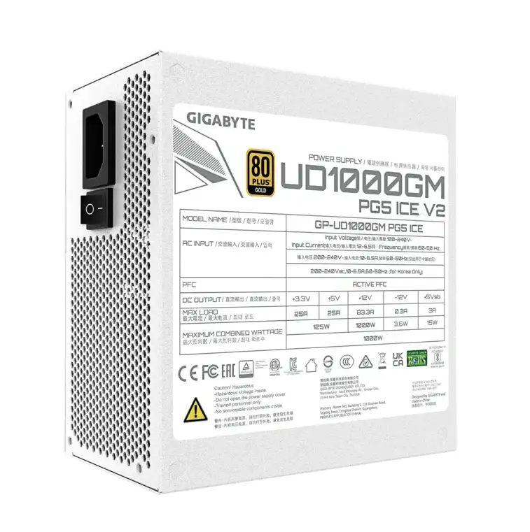 GIGABYTE UD1000GM PG5 V2 ICE, 1000W, White, 80 PLUS Gold, ATX 3.1, Fully Modular