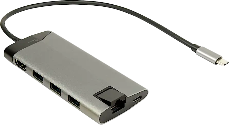 Inter Tech USB Type C docking station with 3x USB 3.0 Type A, 4K HDMI, RJ45 gigabit network connection, card reader for Micro SD, and much more