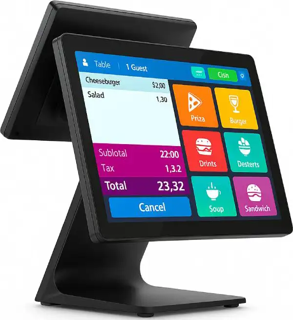 Model: MicroPOS NBP-156, POS touch screen sustav, “A+ grade” touch panel, vodootporan, otporan na ulje i masnoće, otporan na prašinu namjenjen za zahtjevnije uvjete korištenja sa dodatnim panelom za kupce.