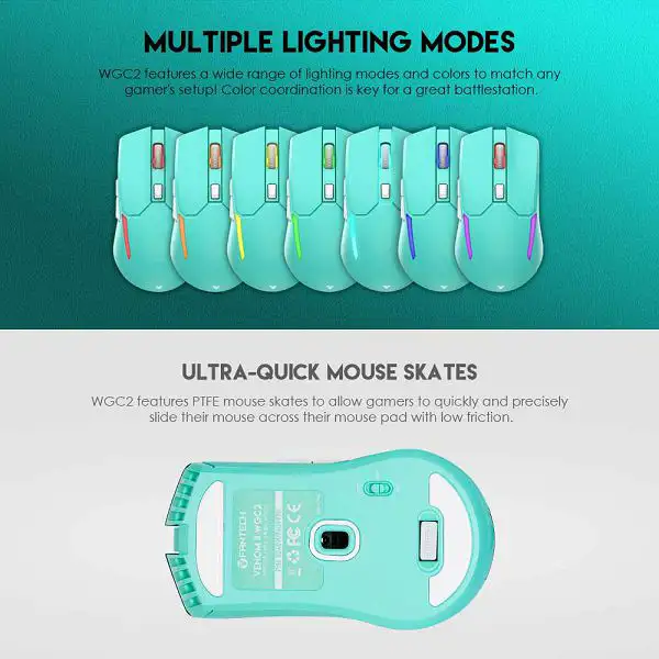 Senzor: gejmerski senzor Pixart 3212 Ubrzanje: do 30 IPS / 10G DPI: on-the-fly od 800 do 2.400 DPI Polling Rate: 150 Hz RGB: Da Životni vijek: 20 milijuna klikova (Huano prekidači) Kapacitet baterije: 400 mAh Bežična udaljenost od računala: 10 m Ergonomski dizajn prilagođen za lijevu i desnu ruku Dimenzije: 130*78*38 mm Težina: 107 g Fantech WGC2 Venom II je opremljen Pixart 3212 senzorom, Huano prekidačima sa životnim vijekom od 20 milijuna klikova i ugrađenom baterijom od 400 mAh. Ovo je inovativan proizvod čija je cijena sasvim prihvatljiva za bilo kojeg igrača. Uređaj se uspješno nosi sa svojim glavnim funkcijama i pomoći ce vam da postignete uspjeh u cyber bitkama.