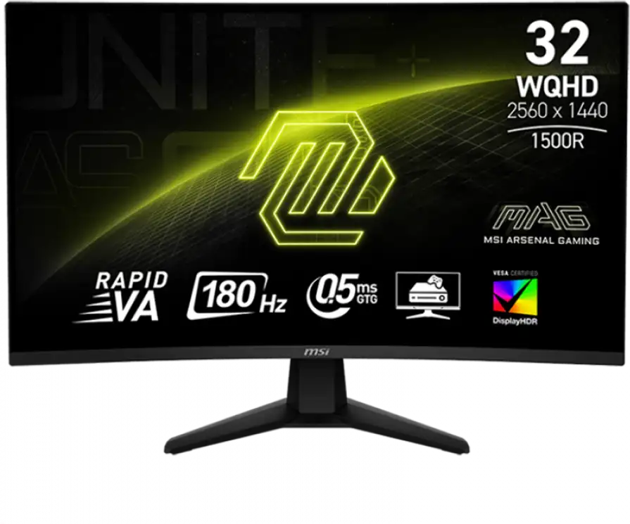 Monitor 31,5¨ MSI / MAG 32CQ6F | MSI Gaming Monitor / Curve 1500R / 31.5″ (80.01 cm) / 2560 x 1440 (WQHD) / 16:9 / 0.2724(H) x 0.2724(V) / RT; 0.5ms ; Refresh Rate ; 180 Hz/ HDR 400 / DC 1.07B / Anti-glare / 2x HDMI, DisplayPort / 3y