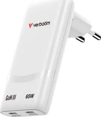 Punjač zidni Verbatim GaN #32355 Fold’n’Go 65W sa sklopivim utikačem, 2xUSB-C PD (EU), bijeli