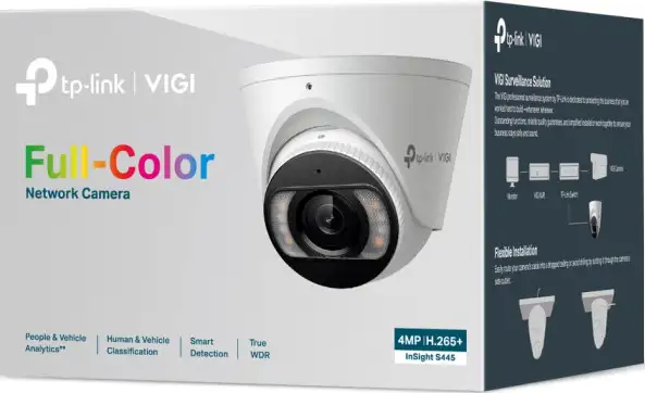 TP-Link VIGI InSight S445 Full color kamera 2K 4MP, Pan/Tilt/Rotation, H.265+, 4mm leća, RJ45, Night Vision, microSD, dvosmjerni audio, detekcija pokreta, vodootporna IP67, VIGI app
