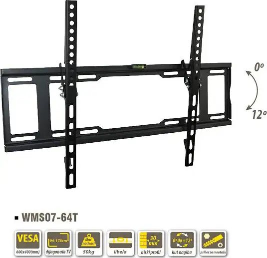 TV NOSAČ ZA LCD DIJAGONALE 94-178 cm, NAGIB 0-12 +CLASS WMS07-64T