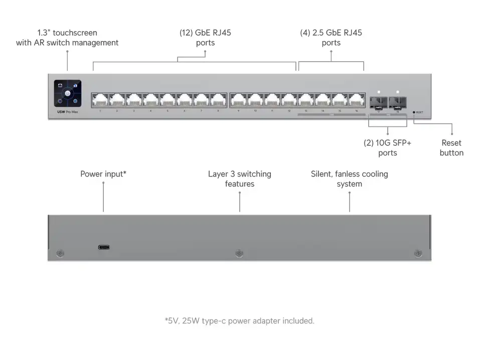 Ubiquiti 16-port, Layer 3 Etherlighting switch 2.5 GbE