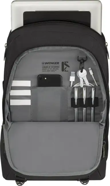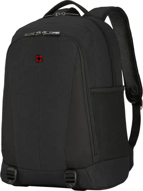 Značajke – 2 vanjska bočna džepa s patentnim zatvaračem – Držač kemijske olovke – Nosač za ključeve – Džep za prijenosno računalo od 15 inča – Džep za tablet širine do 22 cm – Metalni patentni zatvarači – Glavni pretinac s patentnim zatvaračem – Pretinac s patentnim zatvaračem s džepom za organizator – Podesive naramenice s omčom za naočale – Ručka za nošenje ruksaka – Ergonomski naslon sa sustavom cirkulacije zrakaSpecifikacije – Težina (kg): 0.55 – Dimenzije: 35 x 45 x 19 – Materijal: Poliester – Volumen (L): 25 – Proizvođač: Wenger, Švicarska – Boja: crna